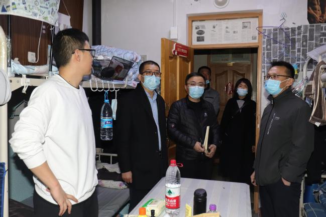 调研组一行重点走访查看了党员宿舍、退役大学生宿舍和三好宿舍,对学生宿舍的新变化给予了肯定,亲切询问了同学们疫情封校期间的日常生活和学习等情况,了解大家生活需求和思想动态,并与学生就考研、就业及学生党员先锋模范作用的发挥等问题进行了交流。