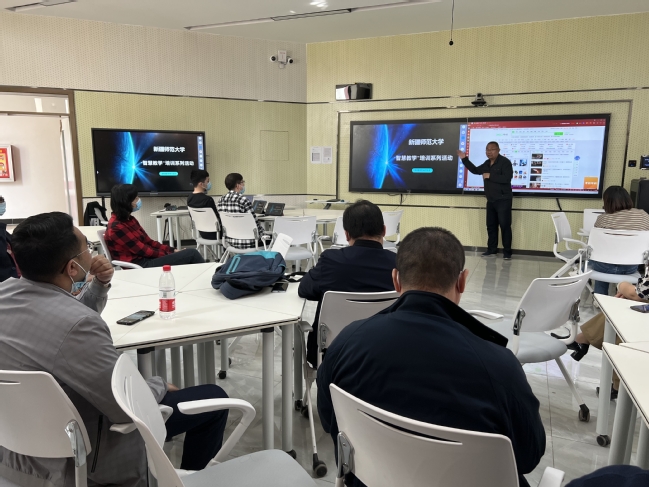 为深入推动课堂教学组织形式改革,在教学中充分利用智慧教室各项设备功能,玩滚官网于4月13日下午在昆仑校区田家炳楼“分组型智慧教室”进行了“智慧教学”培训活动,此次培训由计算机科学学院副教授赵新元主讲。各学院主管教学领导和部分骨干教师参加了此次培训。教务处副处长姜玉琴主持活动。
