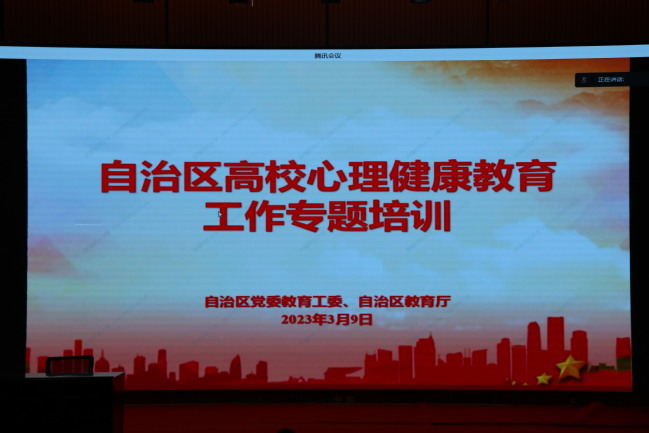 为深入贯彻落实自治区党委教育工委、自治区教育厅《关于做好春季学期开学季学生心理健康教育工作的通知》精神,做好本学期心理健康教育工作,3月9日,玩滚官网负责本科生、研究生心理健康教育工作的全体辅导员、心理健康教师在温泉校区后勤服务楼二楼报告厅参加自治区高校心理健康教育工作专题培训。校党委副书记刘俊、学生工作部(处)处长张进出席讲座现场。