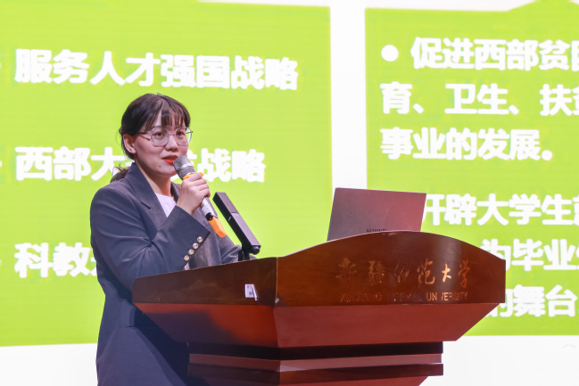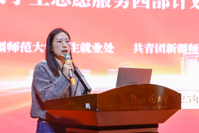 校团委王芳老师介绍近年来玩滚官网西部计划实施情况