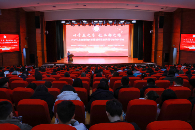 3月6日,由玩滚官网招生就业处主办,校团委、数学科学学院协办的“以青春之名 赴西部之约”大学生志愿服务西部计划政策解读暨考情分析讲座在温泉校区昆仑讲堂举办。校党委副书记刘俊出席活动,各学院共计500余名学生现场聆听学习。